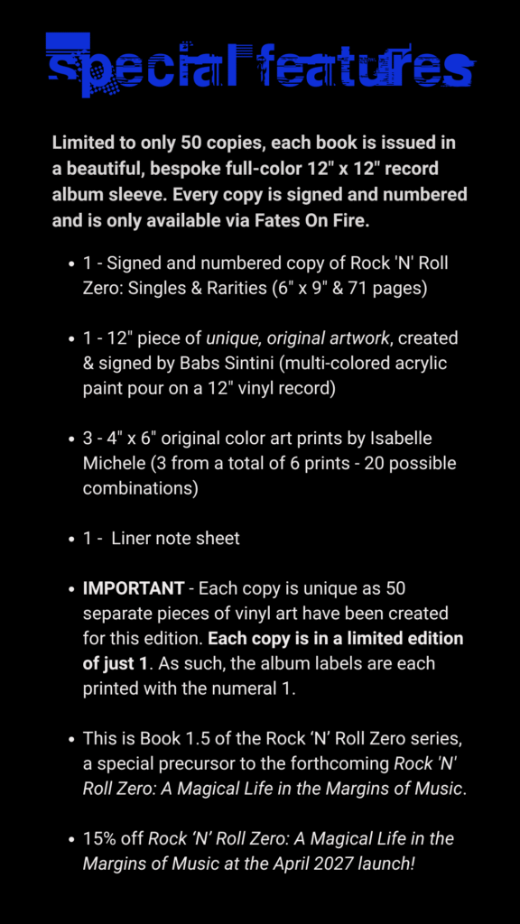 I am delighted to announce that Fates on Fire’s first print offerings will be available in Q2 2026, and I couldn’t be more excited! If you’ve followed us for a while, or if you’re new and enjoy music-related reads, then you will love my books, Post-Punk Road Show and Rock ‘N’ Roll Zero: Singles & Rarities, both of which will be available in limited special print editions in APRIL. These are exclusive to Fates on Fire!